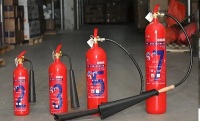 4 6.1.1二氧化碳滅火器二氧化碳滅火器的機體結(jié)構(gòu)二氧化碳在滅火器鋼瓶內(nèi)處于受壓液化狀態(tài)。瓶內(nèi)裝有液化二氧化碳3~6kg。鋼瓶里的壓強約為90kPa。使用時,打開滅火器閥門,液態(tài)二氧化碳經(jīng)瓶內(nèi)導(dǎo)管從噴嘴噴出,體積膨脹到原來的500倍左右。二氧化碳不可燃燒,當(dāng)燃燒區(qū)域二氧化碳的濃度達(dá)到29.2%時,火焰就會熄滅。二氧化碳滅火器多為手提式,其由瓶體、噴射裝置和開關(guān)裝置等組成。二氧化碳滅火器有兩種控制方法:一種是手輪式的,它利用瓶頂部的小手輪戳破保險膜片來釋放二氧化碳,如圖6-1所示。另一種是捏擠式的,它利用捏擠鴨嘴式開關(guān)通過一根控制鋼管從瓶底將二氧化碳滅火劑引出,如圖6-2所示。手輪式二氧化碳滅火器只能一次性使用;大連消防器材,大連滅火器,大連滅火器維修年檢檢測,大連滅火器加藥換粉充裝灌粉罐裝捏擠式二氧化碳滅火器可隨開隨關(guān),多次使用。